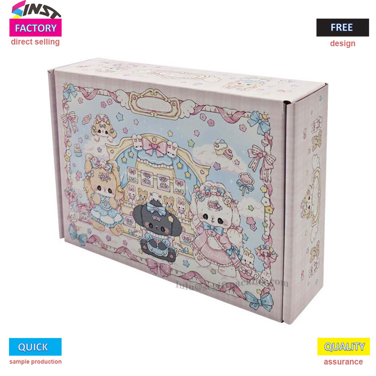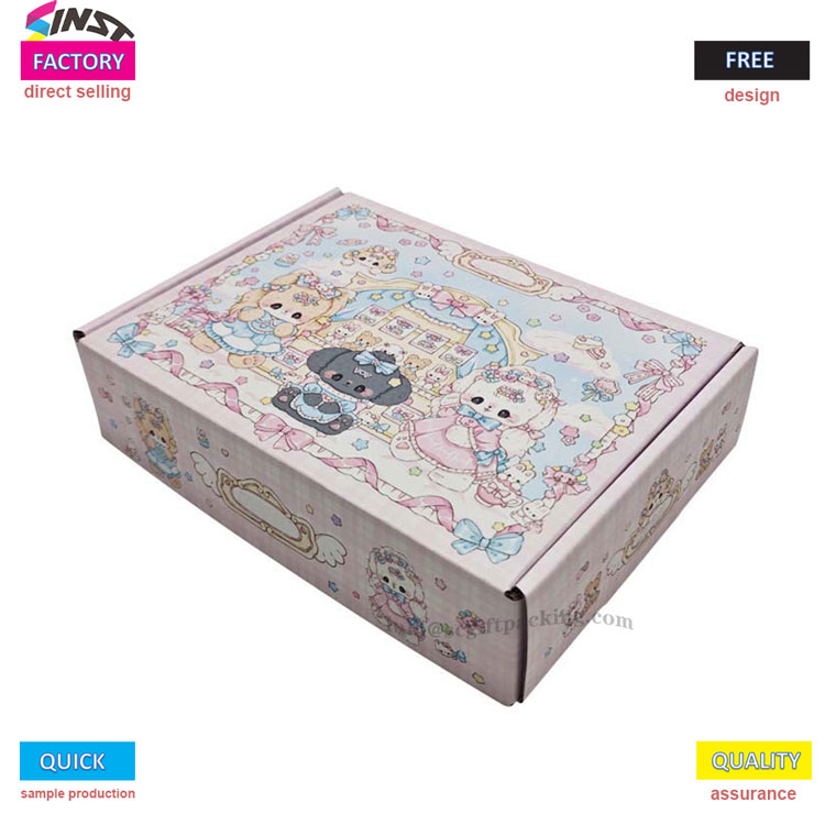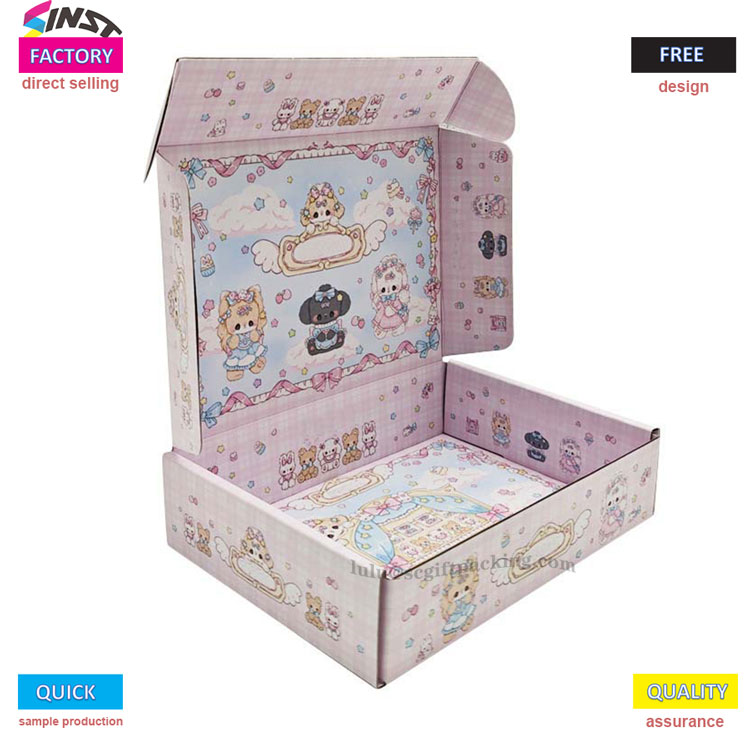 कपड़े के लिए रंगीन नालीदार कागज हवाई जहाज बॉक्स में हल्के नीले रंग के लहजे के साथ एक मीठा गुलाबी रंग योजना है। बॉक्स कार्टून तत्वों जैसे फूलों की माला, छोटे जानवर, धनुष, बादलों और दिलों से भरा है, जो एक स्वप्निल और प्यारा शैली बना रहा है। उपस्थिति से सेवा तक, यह पूरी तरह से कपड़ों की पैकेजिंग को सशक्त बनाता है और ब्रांड अपील को बढ़ाता है।