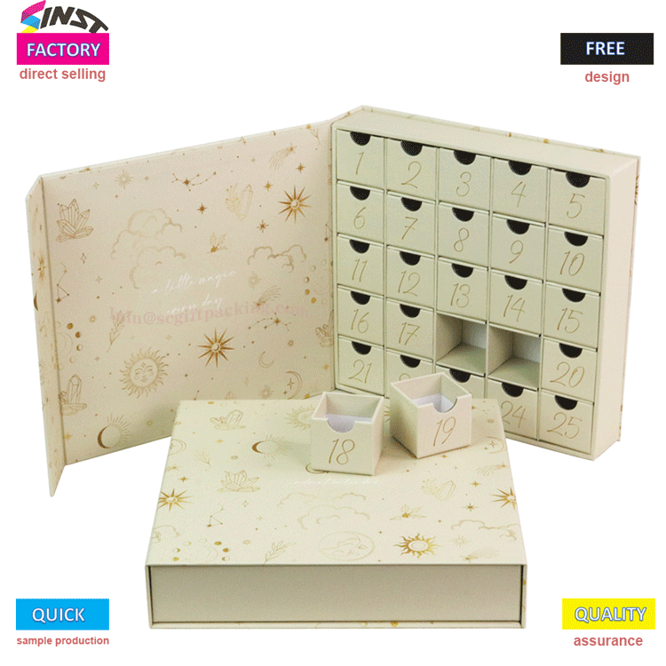 चाहे टॉय स्टोरेज या दैनिक छोटे आइटम वर्गीकरण के लिए उपयोग किया जाता है, इस बॉक्स की रंगीन डिजाइन और व्यावहारिक संरचना आंख को पकड़ने वाली है। इसकी उच्च उपस्थिति के अलावा, इस कैलेंडर बॉक्स में उत्कृष्ट कार्यक्षमता भी है। लाइट ब्लू बॉक्स कवर खोलें, जो बिखरे हुए आइटम के मिश्रण से बचने के लिए विभिन्न आकारों के सामान या हस्तनिर्मित सामग्री को समायोजित करने के लिए कई डिब्बों में बड़े करीने से विभाजित है।