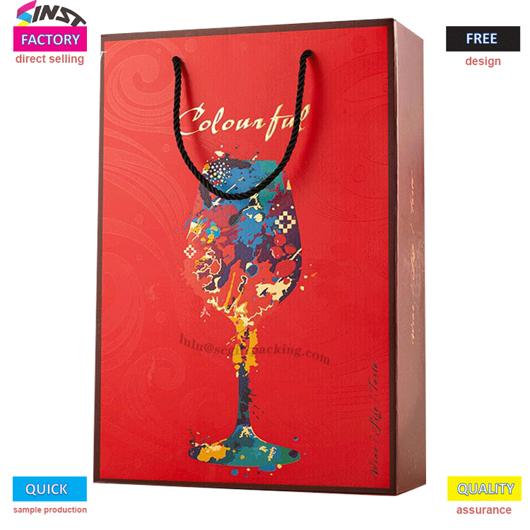 का दृश्य प्रभावहैंडबैग"लाल+रंग" की टक्कर में छिपा है. मुख्य भाग उच्च संतृप्ति वाले चमकदार लाल कार्डबोर्ड से बना है, जो "चमकदार कैनवास" जैसा दिखता है। सामने एक ऊँचे पैर वाले वाइन ग्लास पैटर्न के साथ मुद्रित किया गया है जो रंगीन छींटदार स्याही से बना है - नीले, पीले और नारंगी रंग के ब्लॉक स्वतंत्र रूप से मिश्रित होते हैं, जो एक लहराते कॉकटेल जैसा दिखता है और "गर्मजोशी और विविधता" के ब्रांड टोन को व्यक्त करता है।