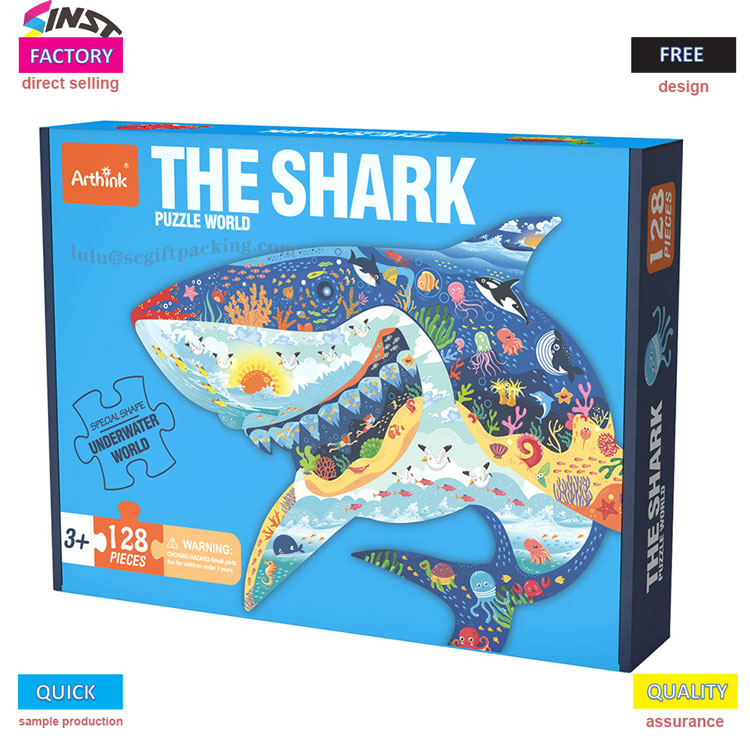 पिछले हफ्ते, मैं प्रदर्शनी हॉल में झांग जी से मिला। उसने शार्क को पकड़ रखा थापहेली उपहार बॉक्सउसने अभी-अभी प्राप्त किया था और खुशी से बोली, "मेरे बच्चे ने इसे खोला और चिल्लाया, 'माँ, देखो! एक बड़े शार्क के दांत चमकेंगे!'" जिस दिशा में उसने इशारा किया, नीले उपहार बॉक्स पर शार्क अपने पूरे शरीर पर छोटी मछली के मूंगे से ढकी हुई थी, और पहेली के 128 टुकड़ों को इकट्ठा करने के बाद, यह एक तैराकी "अंडरवाटर किंग" की तरह लग रही थी - यह हमारी नई लॉन्च की गई शार्क पहेली दुनिया है, जो तस्वीर में रंगीन विदेशी उपहार बॉक्स भी है।