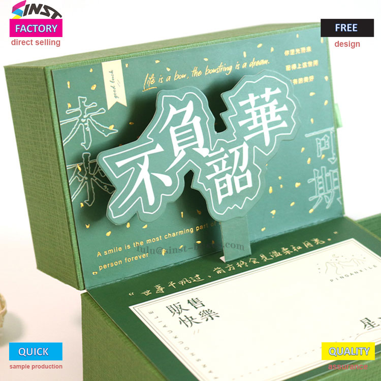 इस डीलक्स उपहार बॉक्स का शरीर हरे कपड़े की बनावट सामग्री से ढका हुआ है, जिसमें एक नाजुक स्पर्श है; बॉक्स कवर छोटे नारंगी सजावट से घिरे खोखले त्रि-आयामी पात्रों "नेवर गिव अप टू यूथ" के आसपास केंद्रित है। ऊपर अंग्रेजी में शब्द छपे हैं जैसे "एक मुस्कान सबसे आकर्षक है", एक गर्मजोशी भरे माहौल को व्यक्त करता है और उपहार बॉक्स द्वारा लाई गई भावनाओं को व्यक्त करता है।