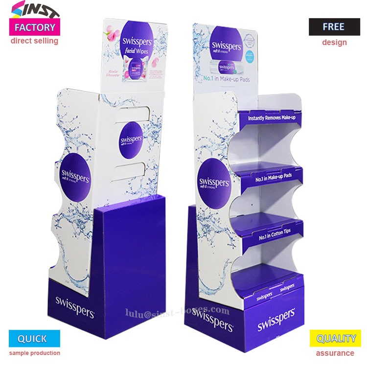 वेट वाइप डिस्प्ले रैक को कई परतों के साथ डिज़ाइन किया गया है, प्रत्येक में वेट वाइप्स और कॉटन स्वाब जैसी छोटी वस्तुओं को सुरक्षित रूप से रखने के लिए खांचे हैं, जिससे उन तक पहुंच आसान हो जाती है। सामग्री कार्डबोर्ड है, जो हल्की है और व्यवस्थित करने में आसान है, और इसे दोबारा स्टॉक करना भी सुविधाजनक है। यह उस प्रकार के डिस्प्ले टूल से संबंधित है जो सरल दिखता है और उपयोग करने पर मजबूती से खड़ा रहता है।